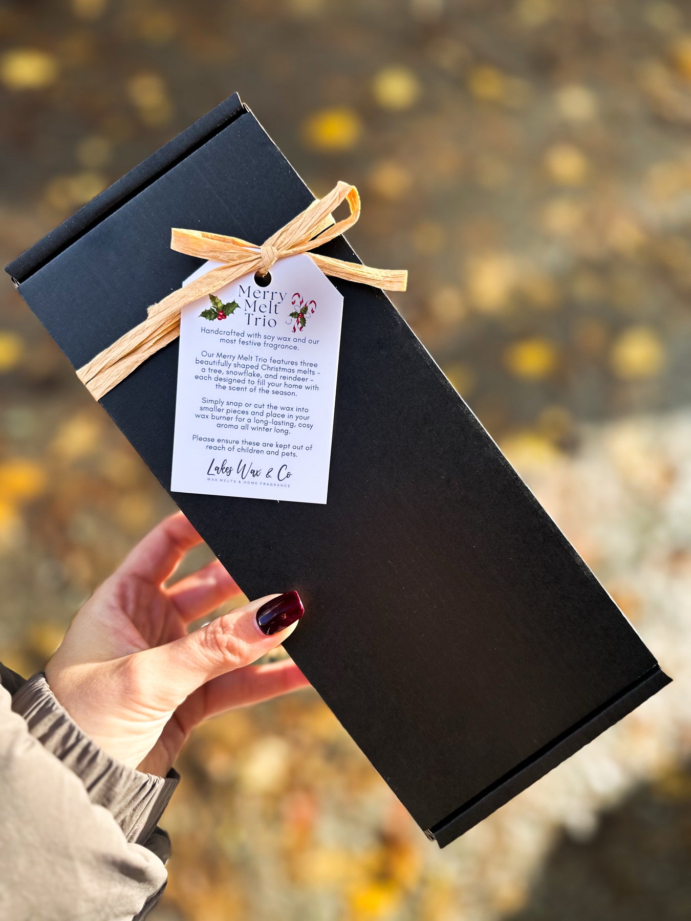 Our Merry Melt Wax Melt Trio brings all the festive feels in one gorgeous little box. Inside, you’ll find three Christmas-shaped wax melts - a snowflake, a reindeer and a Christmas tree - each handcrafted with soy wax and our seasonal fragrances.